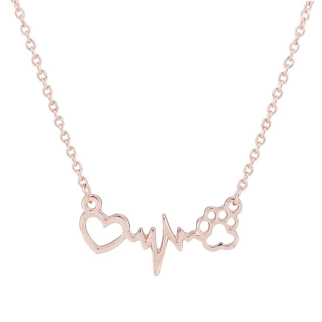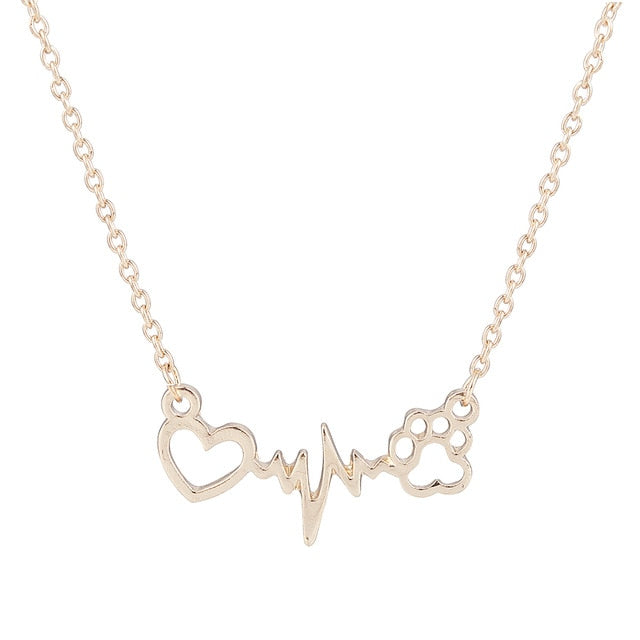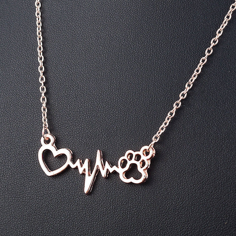 Fashion Cute Pets Dogs Footprints Paw Heart Love Chain Pendant Necklace Necklaces & Pendants Jewelry for Women statment necklace